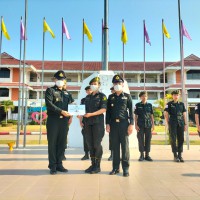 นายดำรง ศิริมาลา ผู้อำนวยการโรงเรียน มอบเกียรติบัตร ให้กับนักศึกษาวิชาทหารปี2และปี3